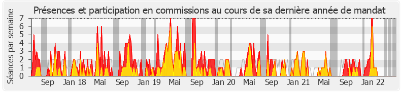 Présences enregistrées     Participations     Vacances parlementaires   Médiane des députés
