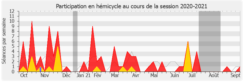 Présences enregistrées     Participations     Vacances parlementaires   Médiane des députés