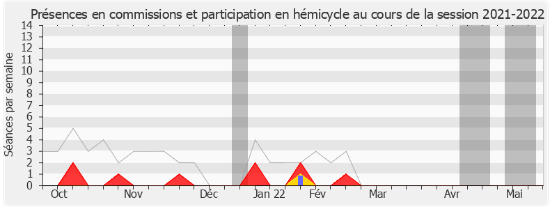 Présences enregistrées     Participations     Vacances parlementaires   Médiane des députés