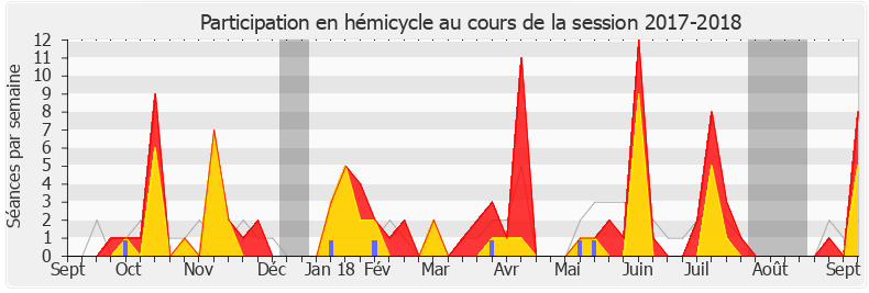 Présences enregistrées     Participations     Vacances parlementaires   Médiane des députés
