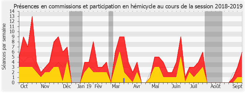 Présences enregistrées     Participations     Vacances parlementaires   Médiane des députés