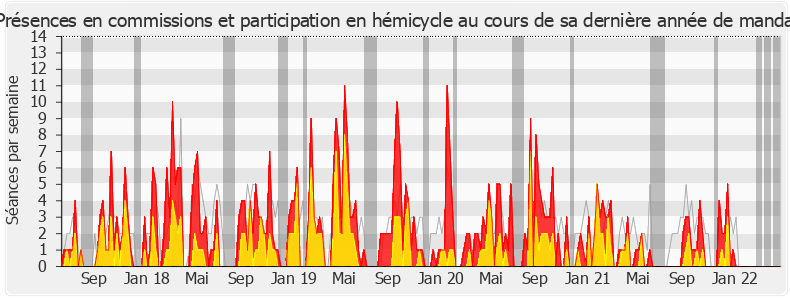 Présences enregistrées     Participations     Vacances parlementaires   Médiane des députés