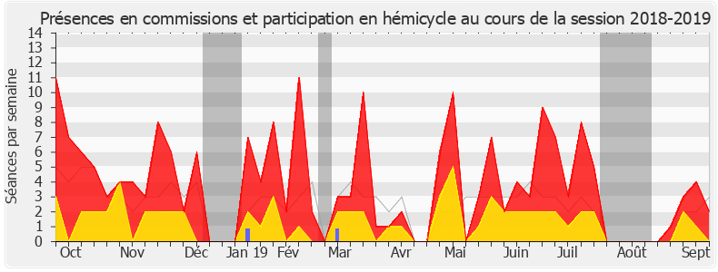 Présences enregistrées     Participations     Vacances parlementaires   Médiane des députés