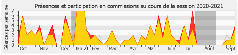 Présences enregistrées     Participations     Vacances parlementaires   Médiane des députés