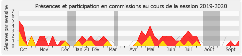 Présences enregistrées     Participations     Vacances parlementaires   Médiane des députés