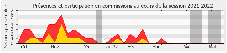 Présences enregistrées     Participations     Vacances parlementaires   Médiane des députés