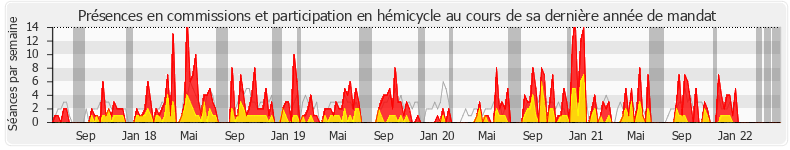 Présences détectées Participations Vacances parlementaires — Médiane des députés Lire plus d'explications