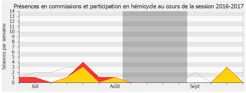 Présences enregistrées     Participations     Vacances parlementaires   Médiane des députés