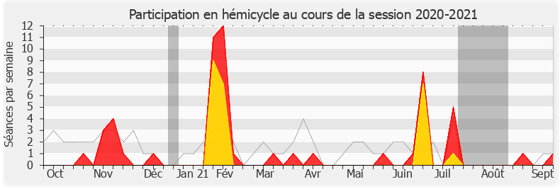 Présences enregistrées     Participations     Vacances parlementaires   Médiane des députés