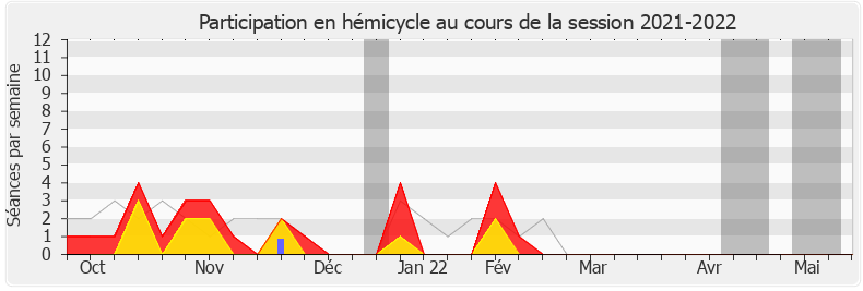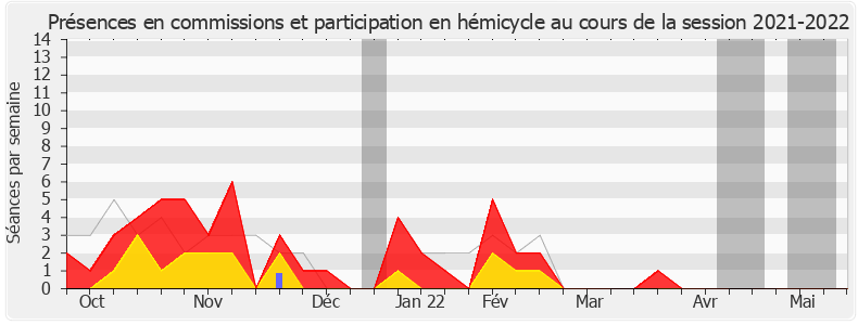 Présences enregistrées     Participations     Vacances parlementaires   Médiane des députés