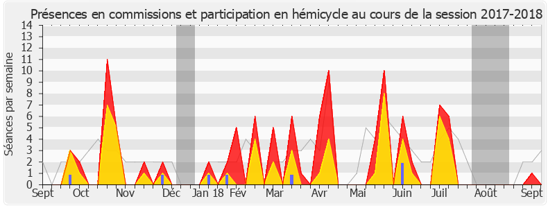 Présences enregistrées     Participations     Vacances parlementaires   Médiane des députés