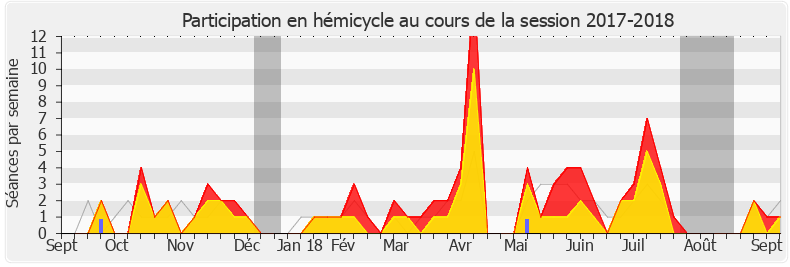 Présences enregistrées     Participations     Vacances parlementaires   Médiane des députés