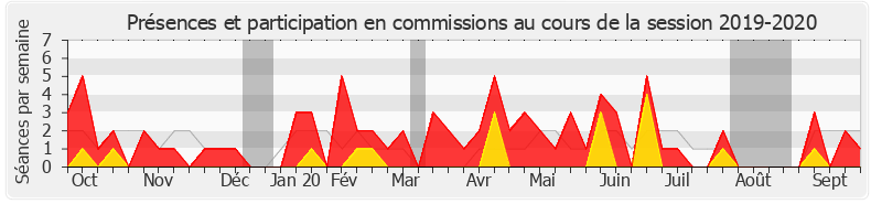 Présences enregistrées     Participations     Vacances parlementaires   Médiane des députés