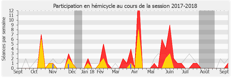 Présences enregistrées     Participations     Vacances parlementaires   Médiane des députés