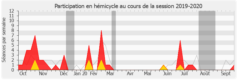 Présences enregistrées     Participations     Vacances parlementaires   Médiane des députés