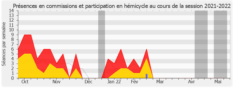 Présences enregistrées     Participations     Vacances parlementaires   Médiane des députés