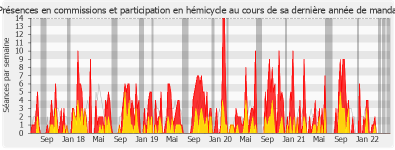 Présences enregistrées     Participations     Vacances parlementaires   Médiane des députés