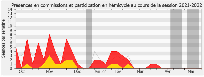 Présences enregistrées     Participations     Vacances parlementaires   Médiane des députés