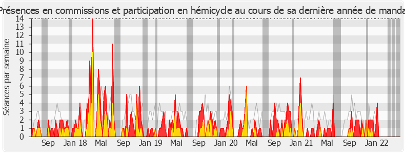 Présences enregistrées     Participations     Vacances parlementaires   Médiane des députés