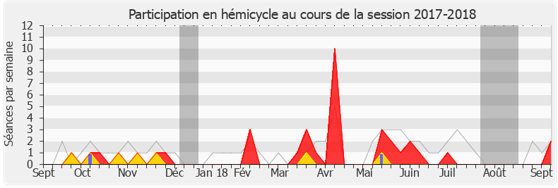 Présences enregistrées     Participations     Vacances parlementaires   Médiane des députés