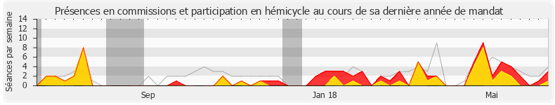 Présences détectées Participations Vacances parlementaires — Médiane des députés Lire plus d'explications
